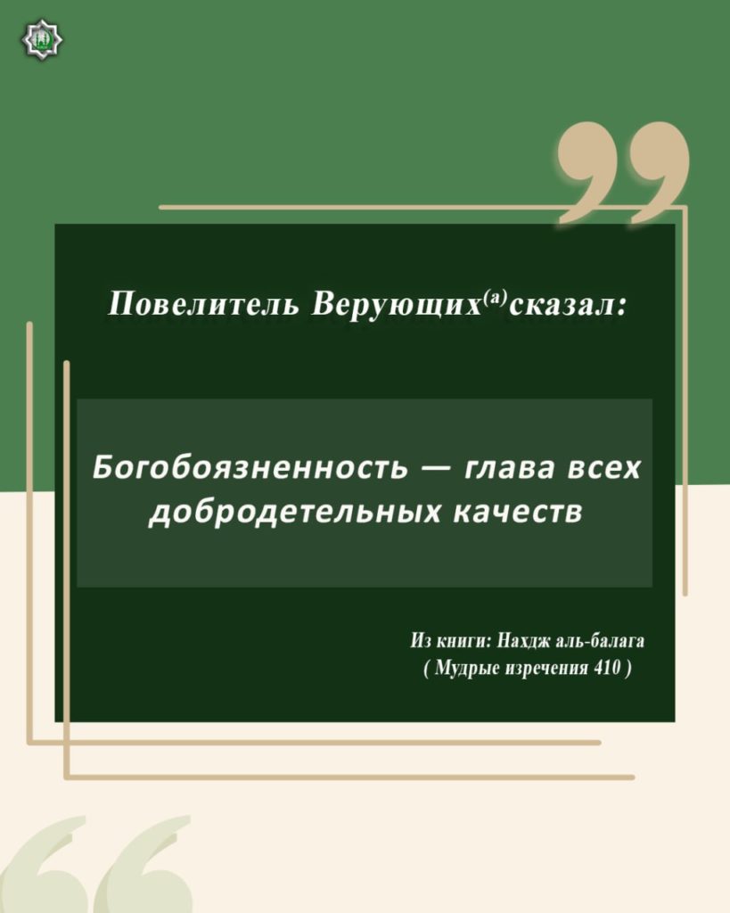 В этом кратком, но исполненном мудрости высказывании, Имам (мир ему) указывает на важнейшую связь между благочестием (тагвой) и возвышенными человеческими нравами.