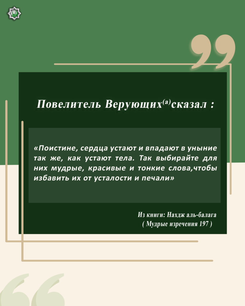 «Поистине, эти сердца устают и впадают в уныние так же, как устают тела. Поэтому подбирайте для них изящные, красивые и свежие слова мудрости»